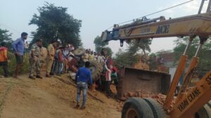 दतिया. शहर के बख्शी के हनुमान के पास ईटों से भरी एक ट्रैक्टर ट्रॉली अचानक अनियंत्रित होकर पलट गई । इस हादसे में ट्रैक्टर ट्राली पर सवार 3 लोग ट्रैक्टर के नीचे दब गए। घटना के बारे में सूचना मिलते ही पुलिस बल के साथ एसडीओपी दतिया सुमित अग्रवाल एवं सिविल लाइन थाना प्रभारी रविंद्र गुर्जर खुद मौके पर पहुंचे । जहां ट्रैक्टर के नीचे दबे लोगों को निकलने के लिए प्रबंध कराए गए। आनन फानन में हाइड्रोलिक मशीन को बुलाकर टैक्टर को उठवाया गया। जिसके बाद उसके नीचे दबे लोगों को निकाला जा सका। जिनमें से एक व्यक्ति अंकुश पुत्र द्वारका प्रसाद 18 निवासी देगुवां की मौत हो गई थी, लेकिन दो लोगों की जान बचाने में पुलिस सफल रही। घायल आशिक पुत्र धनीराम पाल एवं परशु पुत्र दीप सिंह पाल निवासी देगुवां को जिला अस्पताल इलाज के लिए भेजा गया।