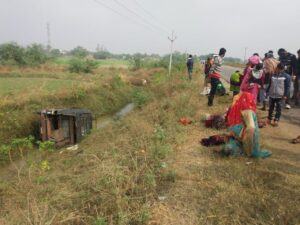 अगला टायर फटने से आपे खंती में पलटी, 8 सवार घायल