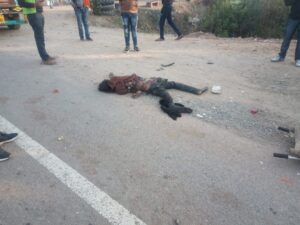 प्राप्त जानकारी के अनुसार नेशनल हाई-वे 75 पर दोपहर के समय ट्रक ड्रायवर पहिया पंचर होने पर वाहन को सड़क किनारे खड़ा कर टायर बदल रहा था, उसी दौरान झांसी की तरफ से तेज गति से आ रहे एक अन्य ट्रक ने उसे चपेट में ले लिया और उसे रौंदता हुआ निकल गया। इस हादसे में ड्रायवर गंभीर रुप से घायल हो गया और मौके पर ही उसने दमतोड़ दिया। सड़क पर चारों ओर खून ही खून फैल गया। वहां से गुजर रहे राहगीरों ने इस घटना की सूचना तुरंत कोतवाली पुलिस और टोल प्लाजा पर दी। पुलिस और हाईवे की एंबुलेंस ने मौके पर पहुंचकर मृत पड़े ट्रक ड्राइवर का शव अपने कब्जे में लेकर उसे एंबुलेंस से पीएम हाउस पहुंचाया।