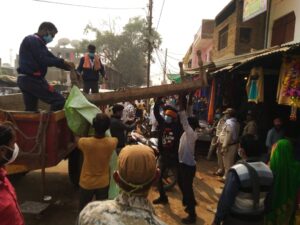 मुख्य बाजार में सड़क पर अस्थाई अतिक्रमण को हटवाने पहुंचा प्रशासनिक अमला