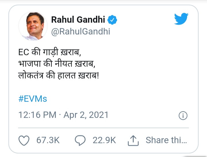 गुवाहाटी. असम में बीजेपी कैंडिडेट की कार में ईवीएम मिलने के बाद चुनाव आयोग ने सख्त कदम उठाया है। चुनाव आयोग ने 4 निर्वाचन अधिकारियों को सस्पेंड कर दिया है। साथ ही संबंधित पोलिंग बूथ पर दोबारा चुनाव कराने का फैसला लिया गया है। चुनाव आयोग ने इस मामले में रिपोर्ट जारी है। उधर, कांगेस ने बीजेपी उम्मीदवार की योग्यता खारिज करने की मांग की है।