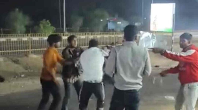 सरेआम गुंडागर्दी : शराब दुकान के बाहर युवक को बेल्ट-डंडों से पीटा, राहगीर की फॉर्च्यूनर का टूटा शीशा