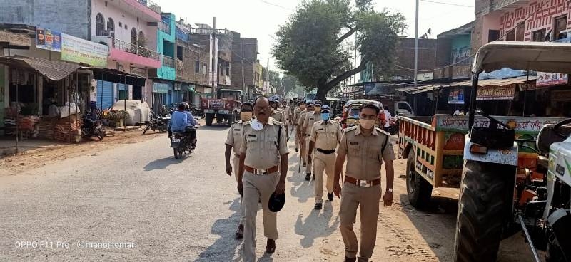 फ्लैग मार्च निकालकर दिया मतदाताआंे को संदेश, निर्भीक होकर डालें वोट