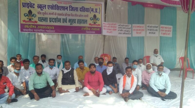 Read moreदतिया. मप्र प्राईवेट स्कूल ऐसाेसिएशन के आव्हान पर अपनी 5 सूत्रीय मांगों को लेकर स्कूल संचालकों ने एक दिवसीय भूख