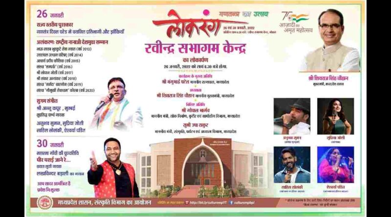 Read moreभोपाल : राज्यपाल मंगुभाई पटेल रविंद्र भवन में 26 जनवरी,2023 को सायं 7 बजे लोकरंग समारोह का शुभारंभ करेंगे। लोकरंग