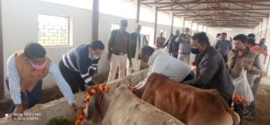दतिया । भांडेर अनुभाग की गौशालाओं का निरीक्षण करने पहुंचे जिला पंचायत सीईओ अतेंद्र सिंह गुर्जर एवं जनपद भांडेर सीईओ आॅफिसर सिंह गुर्जर ने भ्रमण के दौरान करीब आठ गौशालाओं में गौवंश का प्रवेश कराया। इस दौरान अधिकारी द्वय ने पंडोखर गौशाला में गौवंश का तिलक और माला पहनाकर पूजन भी किया। अपने निरीक्षण के दौरान अधिकारियों ने ग्राम पंचायत बागपुरा, अजीतपुरा, सिंघपुरा, धर्मपुरा, पंडोखर का भ्रमण कर वहां चल रहे निर्माण कार्यों काे भी देखा। साथ ही बागपुरा, बेरछ, बिछौंदना, दलपतपुर, धरमपुरा, धनौटी, लहारहवेली तथा पंडोखर में निर्मित हो चुकीं आठ गौशालाओं में से लहारहवेली की गौशाला को छोड़कर शेष गौशालाओं में गायों का प्रवेश प्रारम्भ कराया गया।