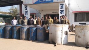 दतिया । चिरुला पुलिस ने थाना क्षेत्र के ग्राम फुलरा में अवैध देशी शराब सहित शराब बनाने की सामग्री जप्त की है। कंजर डेरे से जप्त की गई साम्रगी का मूल्य 4.5 लाख रुपये बताया गया है। पुलिस ने जेसीबी की मदद से जमीन में गड़े देशी शराब के ड्रमों को जमीन से निकलवाकर नष्ट करवाया। विगत शुक्रवार देर शाम को पुलिस ने यह कार्रवाई की है।