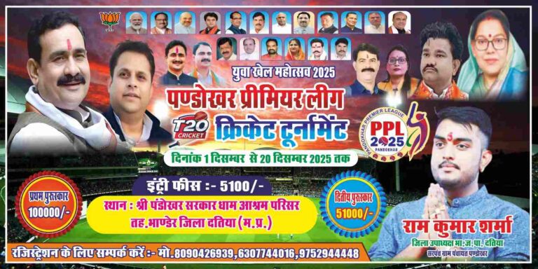 अब पंडोखर बनेगा खेल प्रेमियों का केंद्रबिंदु : 1 दिसंबर से शुरू होगा पंडोखर प्रीमियर लीग क्रिकेट टूर्नामेंट, युवाओं में उत्साह की लहर; प्रथम पुरस्कार एक लाख रुपये !