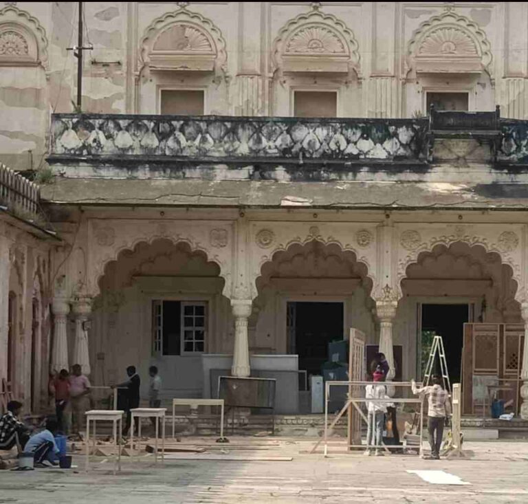 Datia news : दतिया। प्रसिद्ध पीतांबरा पीठ पर चल रहे मुख्य द्वारों के निर्माणाधीन पिलर बुधवार रात तेज धमाके के