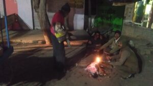 सार्वजनिक स्थानों पर जलाए अलाव