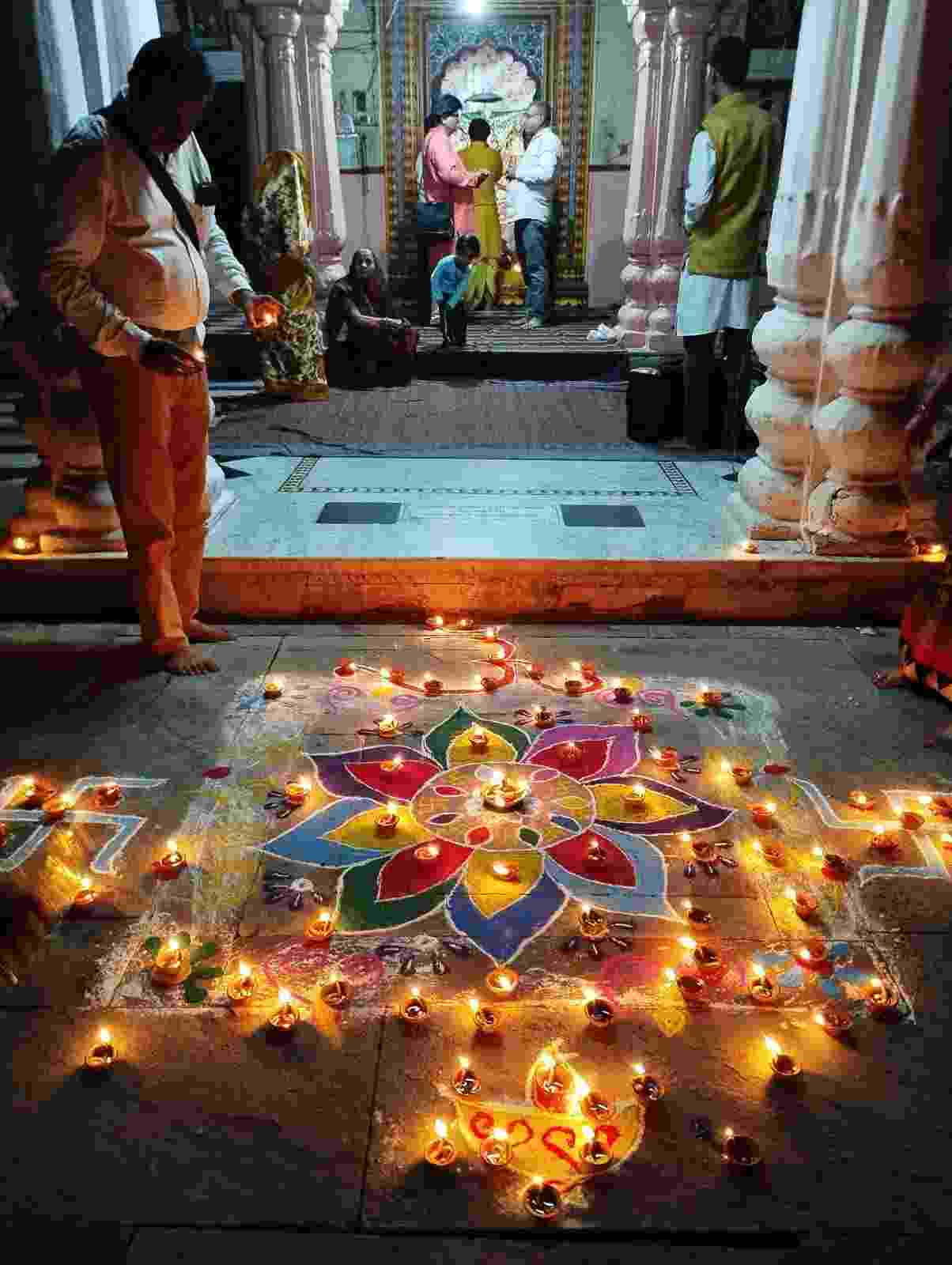 महाकाल नगरी में हुए आयोजन के उपलक्ष में दतिया के मंदिरों में मना दीपोत्सव : रंगोली सजाकर हुए भजन कीर्तन
