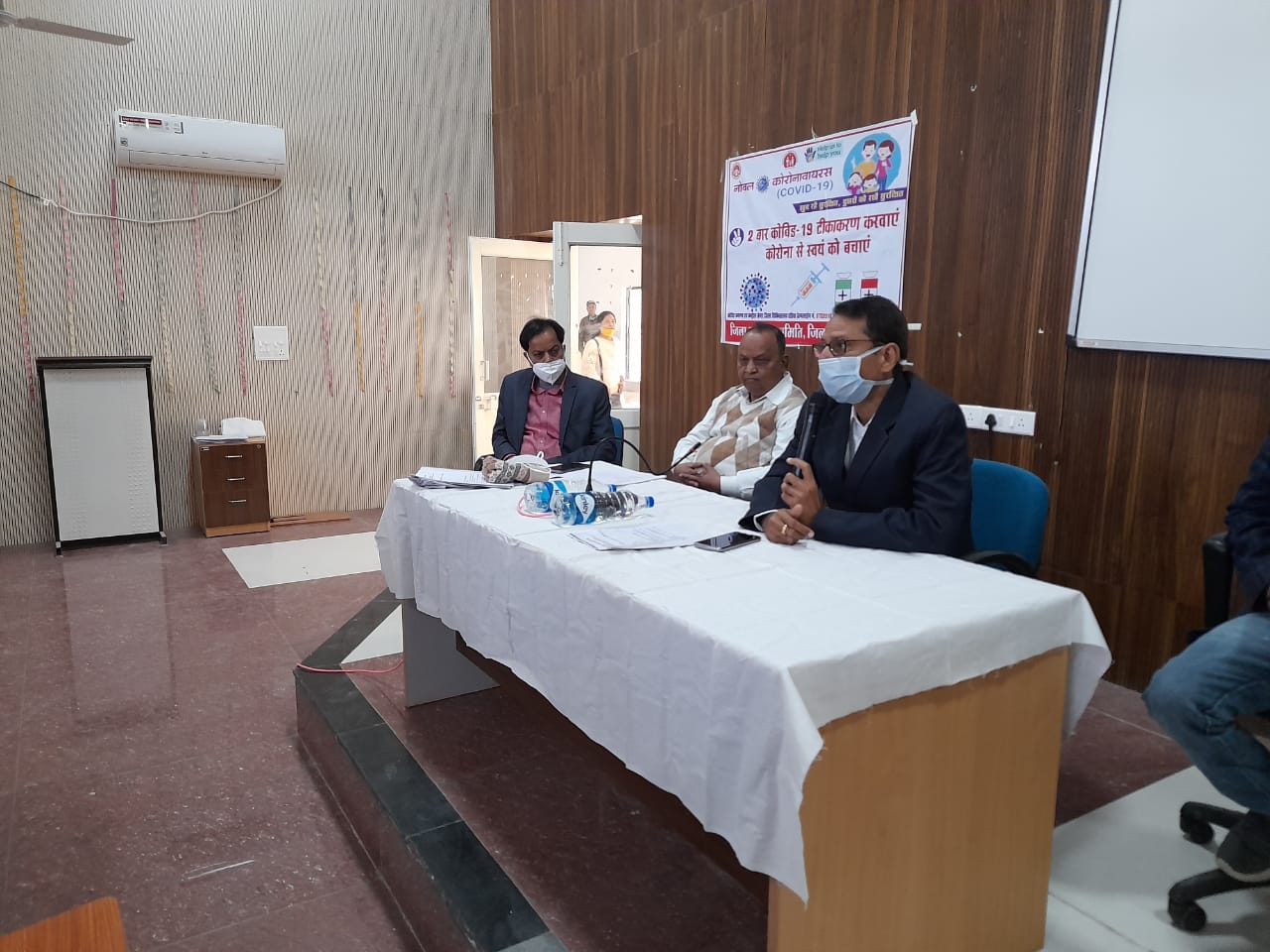दतिया. जिले में कुल 3 स्थानों पर कोविड-19 टीकाकरण शनिवार को सुबह 9 बजे से किया जाएगा। पहला टीकाकरण स्वास्थ्य विभाग के सफाई कर्मचारी को लगाया जाएगा। इससे पहले प्रधानमंत्री मोदी का टीकाकरण शुभारंभ का लाइव टेलीकास्ट भी हॉस्पिटल में किया जाएगा। स्वास्थ्य एवं जिला प्रशासन की ओर से संयुक्त पत्रकार वार्ता में कलेक्टर संजय कुमार और मुख्य चिकित्सा एवं स्वास्थ्य अधिकारी डा. एसएन उदयपुरिया ने पत्रकारों को कोरोना टीके के बारे में अहम जानकारी दी।