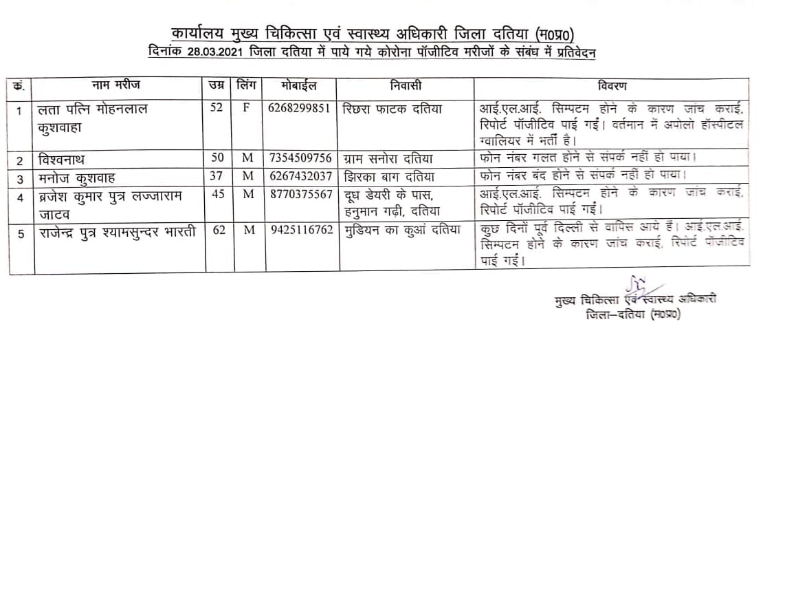 पूर्व विधायक राजेंद्र भारती अभी हाल ही में दिल्ली से वापिस लौटे थे। जिसके बाद उन्होंने कोरोना जांच कराई थी। जिसमें वह पॉजिटिव निकलें। गौरतलब है कि जनवरी माह में राजेंद्र भारती की तबियत खराब हुई थी। जिसके बाद उन्हें उपचार के लिए दिल्ली में भर्ती कराया गया था। जहां स्वास्थ्य में सुधार होने पर भारती दतिया वापिस लौट आए थे। तबियत के सिलसिले में वह हाल में दिल्ली गए थे। जहां से लौटने पर कोरोना पाॅजिटिव पाए गए।