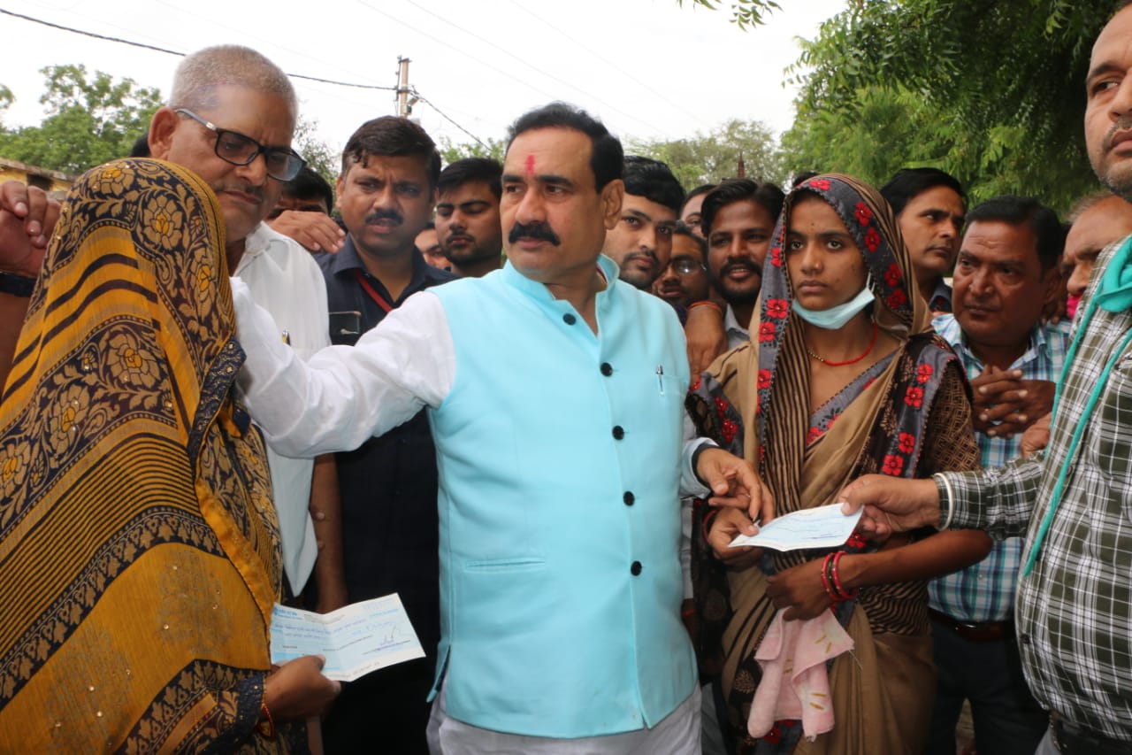 Datia News : दतिया। मुख्यमंत्री कृषक जीवन कल्याण योजना के तहत तीन व्यक्तियों के कृषि कार्य करते हुए मृत्यु हो जाने पर पीड़ित परिवारों में प्रत्येक को 4-4 लाख रुपये की सहायता राशि रविवार को गृहमंत्री डाॅ. नरोत्तम मिश्र ने प्रदाय की। गृहमंत्री ने इस दौरान आमजन की समस्याओं को भी सुना और उसके निराकरण के लिए संबंधित अधिकारियों को निर्देश भी दिए।