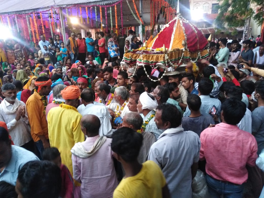 मंदिर प्रांगण में ठसाठस भक्तों की भीड़ के बीच पूरे उत्साह के साथ भगवान भास्कर के दिव्य रूप काे पालकी पर सवार कर ढोल नगाड़ों के साथ मंदिर में सात परिक्रमा कराकर रथयात्रा की परंपरा िनभाई गई।