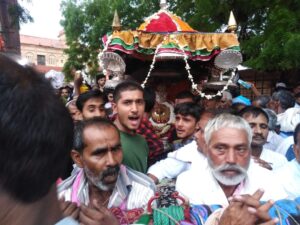 मंदिर परिसर में भजन कीर्तन करती मंडलियां और जयघोष करते श्रद्धालुओं ने पूरे श्रद्धाभाव के साथ रथयात्रा में भाग लिया। मंदिर परिसर में पुलिस की व्यवस्था भी रही। लेकिन श्रद्धालुओं को रोक पाना उनके लिए मुश्किल रहा। देर शाम तक मंदिर में भजनों का सिलसिला चलता रहा।