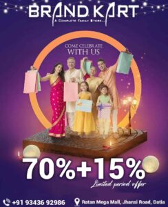 Datia news : दतिया । इस बार दीपावली को खास बनाने के लिए रतन मेगा मॉल के ब्रांडकार्ट पर शोपिंग आफर ग्राहकों को जमकर लुभा रहा है। यहां 70+15 प्रतिशत का डिस्काउंट धमाका मचाए हुए है। जिसे लेकर खरीददारों में भारी उत्साह है। यह डिस्काउंट ब्रांडेड कपड़ों, जूते, ट्राली बेग, साफ्ट टॉय, अंडर गारमेंट्स सहित अन्य ऐसेसरीज पर दिया जा रहा है। रतन मेगा मॉल में शानदार लोकेशन, सेल्फी प्वाइंट और फन, मूवी, चाट चटोरे सहित किड्स जोन के इंजॉय के बीच शॉपिंग करने का लुत्फ शहरवासी खूब उठा रहे हैं।