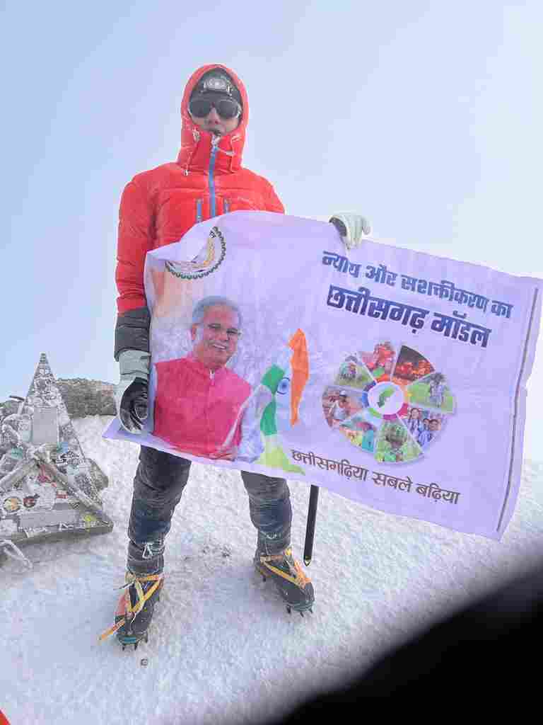रायपुर : छत्तीसगढ़ की बेटी अंकिता गुप्ता ने 15 अगस्त को स्वतंत्रता के अमृत महोत्सव के गौरवशाली अवसर पर यूरोपीय महाद्वीप की सबसे ऊंची चोटी माउंट एलब्रुस पर मुख्यमंत्री श्री भूपेश बघेल द्वारा दिया तिरंगा फहराया। मुख्यमंत्री श्री भूपेश बघेल ने यूरोप जाने से पहले विगत 3 अगस्त को युवा पर्वतारोही सुश्री अंकिता को अपने निवास में राष्ट्रीय ध्वज भेंट किया था। मुख्यमंत्री श्री बघेल और मंत्री श्री मोहम्मद अकबर ने सुश्री अंकिता गुप्ता को इस सफलता पर बधाई एवं शुभकामनाएं दी है।