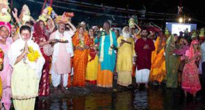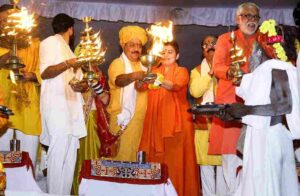पुष्पावती तट पर हुई भव्य गंगा आरती : कलश यात्रा के पश्चात पुष्पावती नदी के तट पर माँ पुष्पावती गंगा आरती का भव्य आयोजन किया गया। काशी और प्रयागराज से आए विद्वान पंडितों द्वारा विधि-विधान से सामूहिक आरती की गई, जिसने वातावरण को पूर्णतः आध्यात्मिक बना दिया। दीपों की रोशनी और मंत्रोच्चार के बीच आरती का दृश्य अत्यंत मनोहारी रहा।
