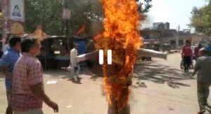 दतिया-भांडेर. उपचुनाव भांडेर में कांग्रेस प्रत्याशी फूलसिंह बरैया के सोशल मीडिया पर वायरल हो रहे वीडियो के विरोध में मंगलवार को उनाव में सवर्ण वर्ग के महिला व पुरुषों द्वारा विरोध प्रदर्शन कर उनका पुतला दहन किया गया। भांडेर अनुभाग के कस्बा उनाव में सवर्ण वर्ग के लोगों ने बरैया की कथित वीडियो पर नारेबाजी की गई। उसके बाद उनाव चौराहे पर उनका पुतला दहन किया। पुतला दहन में शामिल सवर्ण वर्ग के लोगों ने बताया कि हाल ही में कांग्रेस प्रत्याशी फूलसिंह बरैया द्वारा कथित रुप से एक वीडियो में सवर्ण महिलाओं को लेकर आपत्तिजनक शब्दों का इस्तेमाल किया गया था। यह वीडियो सोशल मीडिया पर वायरल हुआ था। उसीके विरोध को लेकर पुतला दहन किया गया है। पुतला दहन के दौरान काफी संख्या में सवर्ण वर्ग के लोग उपस्थित रहे। बताया जाता है कि पुतला दहन के बारे में प्रशासनिक अनुमति नहीं ली गई थी।