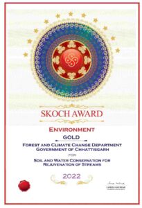 गौरतलब है कि छत्तीसगढ़ में गत चार वर्षों के दौरान राज्य सरकार द्वारा चलाए जा रहे महत्वाकांक्षी ‘नरवा विकास‘ योजना के तहत वनांचल स्थित 6 हजार 395 नालों के लगभग 23 लाख हेक्टेयर जल ग्रहण क्षेत्रों को उपचारित करते हुए विभिन्न जल संरचनाओं का निर्माण तेजी से किया जा रहा है। इसके तहत एक करोड़ 61 लाख से अधिक भू-जल संरक्षण संबंधी संरचनाओं का निर्माण शामिल हैं। यह राष्ट्रीय अवार्ड देश में जनसामान्य की प्रगति की दिशा में कराए जा रहे उत्कृष्ट कार्यों के लिए नई दिल्ली की स्कॉच संस्था द्वारा राष्ट्रीय स्तर पर विभिन्न राज्यों तथा संस्थाओं के प्रस्तुतिकरण के आधार पर दिया जाता है।