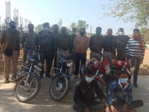 बसई थाना प्रभारी रामसेवक शर्मा ने बताया कि रविवार को पुलिस ने मुखबिर की सूचना पर धरपकड़ की कार्रवाई करते हुए बाइक चोर छोटू पुत्र पर्वत लोधी एवं नवल पुत्र शिवनारायण लोधी निवासी कंधारी को गिरफ्तार कर लिया। पकड़ में आए बाइक चोरों से पुलिस ने जब सख्ती से पूछतांछ की तो उनके कब्जे से चोरी की चार बाइक क्रमांक एमपी33 एमआर 0865, सीडी डॉन यूपी93 एवी 4789, हीरो होंडा स्प्लेंडर प्लस क्रमांक यूपी93 एबी 6233, टीवीएस स्पोर्ट लाल रंग क्रमांक यूपी94 एफ 6511 को बरामद की गई।