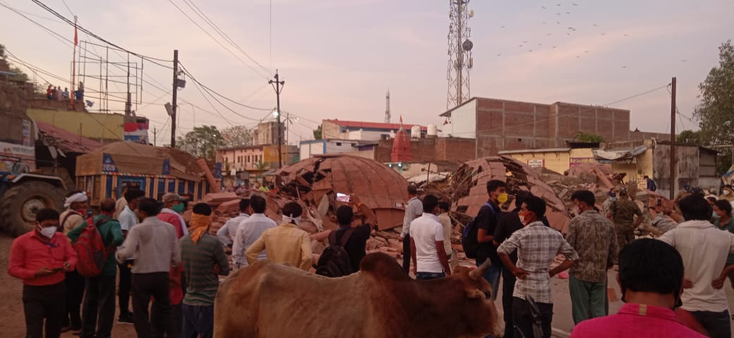 सोमवार शाम तेज आवाज के साथ गिरी बारादरी की गूंज चारों ओर फैल गई। जिसे सुनकर आसपास के लोग और चौराहे पर तैनात पुलिस बल तत्काल मौका पहुंचे। जहां बीच सड़क पर बारादरी के बनाए गए गुंबद धाराशाई हुए पड़े थे। गौरलतब है कि शहर की सुंदरता बढ़ाने के लिए पीतांबरा पीठ मंदिर के सामने दो बारादरी बनाई गई थी। जिनमें से मंदिर के पास वाली बारादरी गिर पड़ी। जानकारी के अनुसार सोमवार शाम रेत भरी ट्रैक्टर ट्राली वहां से निकल रही थी जिसकी टक्कर लगने से बारादरी भरभराकर धराशाई हो गई। बारादरी के मलवे के नीचे वहां खड़ी मोटर साइकिल भी दब गई। जिला प्रशासन की टीम ने मौके पर पहुंचकर मालवा हटाने के लिए रेस्क्यू शुरू कर दिया है।