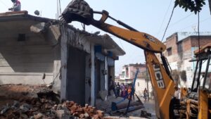 अतिक्रमण हटाने के दौरान महिलाओं ने मचाया हंगामा, पुलिस से की हाथापाई, जेसीबी ने ढहा दी दुकानें