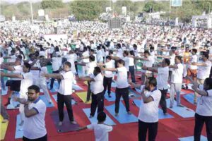 त्रिकोणासन के सामूहिक प्रदर्शन को लेकर जाधव ने कहा कि यह योग में निहित “साझा कल्याण” की भावना को दर्शाता है। साथ ही उन्होंने आयुष आहार के महत्व पर जोर देते हुए बाजरा, रागी, नारियल तेल और पारंपरिक मसालों के सेवन को रोग प्रतिरोधक क्षमता बढ़ाने के लिए उपयोगी बताया।